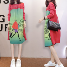 2017春装欧洲新款女装欧货潮站时尚印花撞色拼接中长款长袖连衣裙