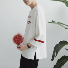 夏季原宿风日系潮男打底衫男士中袖t恤韩版宽松男七分半截袖上衣
