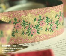 ZAKKA手工大爱 粉色金色花朵 棉质花边 超宽 宽3.5cm
