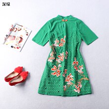 105009 【奢华店主推荐】2017女装豪华刺绣花朵超漂亮大气连衣裙