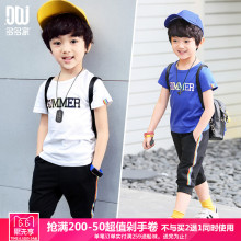 多多家童装2017夏装新款男童半袖T恤套装 中大儿童韩版短裤棉2477