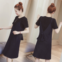 孕妇装夏装上衣2017新款韩版假两件潮妈裙子中长款短袖孕妇连衣裙