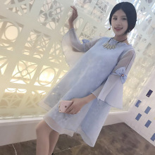 孕妇装夏季韩版新款2017短袖宽松大码中长款a字欧根纱孕妇连衣裙