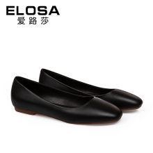 方头皮鞋女职业工鞋工作鞋女黑色平底防滑软皮浅口百搭平跟单鞋女