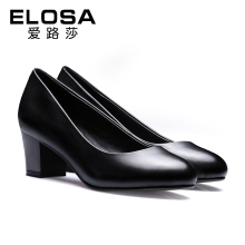爱路莎工作鞋女黑色职业高跟鞋尖头浅口舒适面试鞋上班鞋女皮鞋女