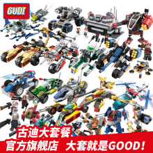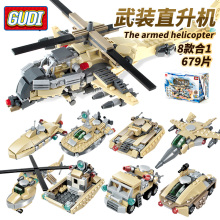 古迪益智拼装积木军事模型8合1儿童3-6-8岁男孩拼插儿童玩具