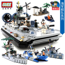 古迪积木拼装野牛气垫船航母益智6-10岁61儿童节军事礼物男孩玩具