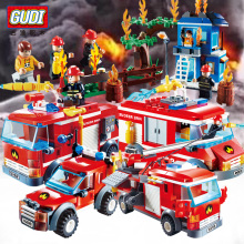 古迪积木 小颗粒儿童玩具车早教拼装塑料拼插消防车男孩6周岁以上