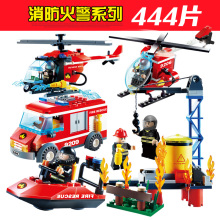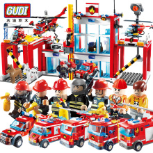 古迪益智拼装积木小男孩消防火警直升机军事拼插模型儿童玩具礼物