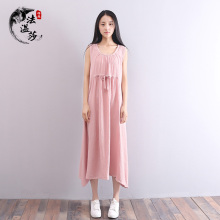 棉麻女装连衣裙复古文艺范麻纱夏季无袖背心长裙子亚麻宽松森女系