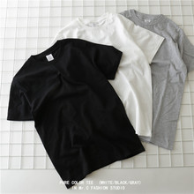 港风简约百搭纯色t恤女男情侣夏季薄款全棉圆领潮男短袖打底衫tee