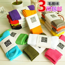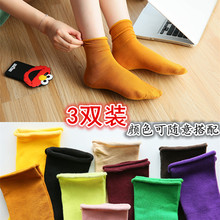 堆堆袜 女 韩国春夏薄款复古中筒纯棉纯色彩色松口学生女袜月子袜