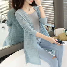 针织开衫女中长款韩版宽松长袖空调衫防晒衣薄款外搭披肩外套春秋