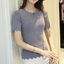 夏季短袖打底衫女短款套头薄毛衣内搭修身中袖T恤紧身半袖针织衫