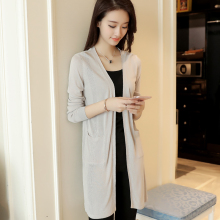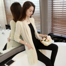 针织开衫女中长款宽松百搭长袖2017女装新款韩版外套纯色披肩薄款