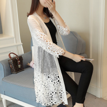 春夏季镂空中长款针织衫女开衫大码外搭薄款空调衫防晒衣披肩外套