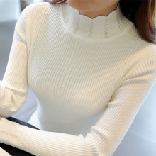 2017春装新款韩版女装低领套头打底针织衫厚纯色修身上衣女长袖
