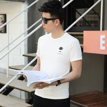 新款纯色圆领时尚潮流短袖T恤 男青年韩版韩版休闲百搭打底衫潮