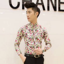 男士花衬衫长袖韩版男装衬衣 时尚韩版修身春装大码潮碎花男衬衫