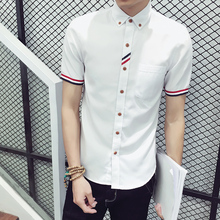 男士短袖衬衫韩版修身休闲衬衫男短袖学生时尚青少年白色衬衣潮
