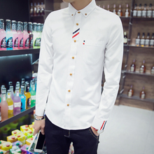 长袖衬衫男2016秋装新款牛津纺男士衬衣时尚韩版修身纯色男装衬衫