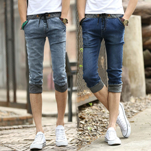 夏天潮流男士七分裤牛仔短裤夏季薄款男生休闲小脚修身7分男裤子