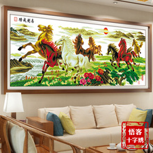 正品印花十字绣马到成功大幅八骏图新款八匹马客厅简约现代2.5米