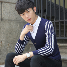 zdbz针织衫2016秋装毛衣男士衬衫领条纹套头假两件休闲线衫外衣男