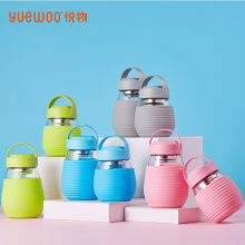 悦物玻璃杯学生透明水杯子创意情侣杯便携带盖把手随手杯花茶杯女