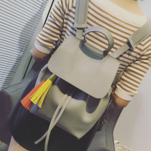 2016冬季新款韩版流苏复古双肩包休闲抽带水桶小背包时尚潮流女包