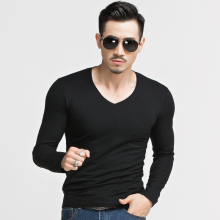 春秋季新款长袖T恤男秋装V领纯色修身打底秋衣紧身小衫男士体恤衫