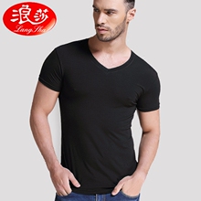 浪莎男士短袖T恤男夏V领半袖紧身莫代尔打底汗衫圆领纯色内衣男