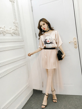 时尚韩版印花中长T恤连衣裙+超仙气网纱裙套装#5308(实拍实价)
