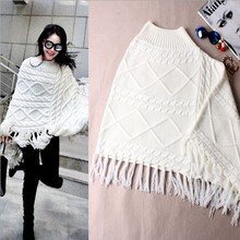 2016秋冬新款波西米亚红色毛线针织民族风几何流苏宽松斗篷外套
