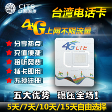 台湾电话卡上网卡4G无限流量中华电信手机卡可通话分享热点包邮