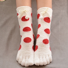 低调唯美复古羊毛五指袜女 秋冬纯棉加厚松口中筒点子纱脚趾袜子