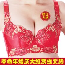 本命年喜庆婚宴款粉红丝带正品调整型聚拢文胸 婚礼 新年大红内衣