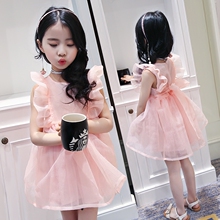 女童夏季连衣裙童装2017新款夏装儿童公主裙宝宝木耳边飞袖蓬蓬裙