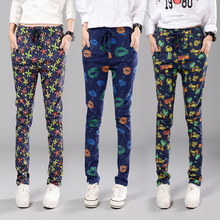 秋装新松紧腰图案印花哈伦裤女 宽松时尚学生休闲长裤小脚裤大码