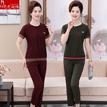 夏季中老年女装休闲运动套装短袖T恤大码上衣妈妈装长裤两件套女