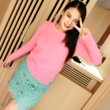清仓@大码女装胖mm2017春装新款针织兔毛毛衣+蕾丝短裙两件套装