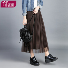 春夏新款半身网纱中长款蓬蓬裙蕾丝百褶高腰修身裙子韩版大摆长裙