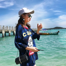 韩版原宿bf风宽松上衣中长款港味蓝色长版潮韩国学生短袖T恤女夏