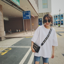 2017春装新款女装韩版宽松显瘦套头中长款白色五分袖短袖T恤上衣