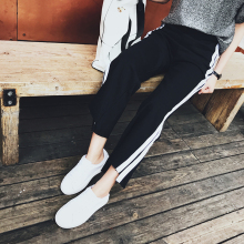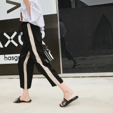 夏天缎面宽松直筒侧条纹bf风运动裤女九分裤港味复古chic裤子薄款