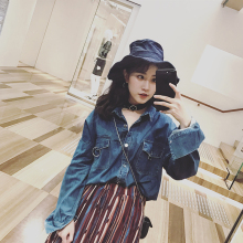 米莎2017春装新款女装韩版BF风金属环薄款宽松牛仔衣衬衫衬衣上衣