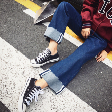 韩版原宿风高腰显瘦学生牛仔裤毛边铅笔裤喇叭裤九分裤女裤子