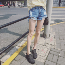 韩版显瘦牛仔裤韩国学生热裤宽松毛边高腰阔腿破洞牛仔短裤女夏季