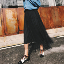 韩版高腰a字裙中长款半身裙百褶裙两件套纱裙灰色长裙裙子