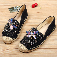 2017春季新款休闲女鞋懒人平底渔夫鞋女单鞋低帮草编一脚蹬帆布鞋